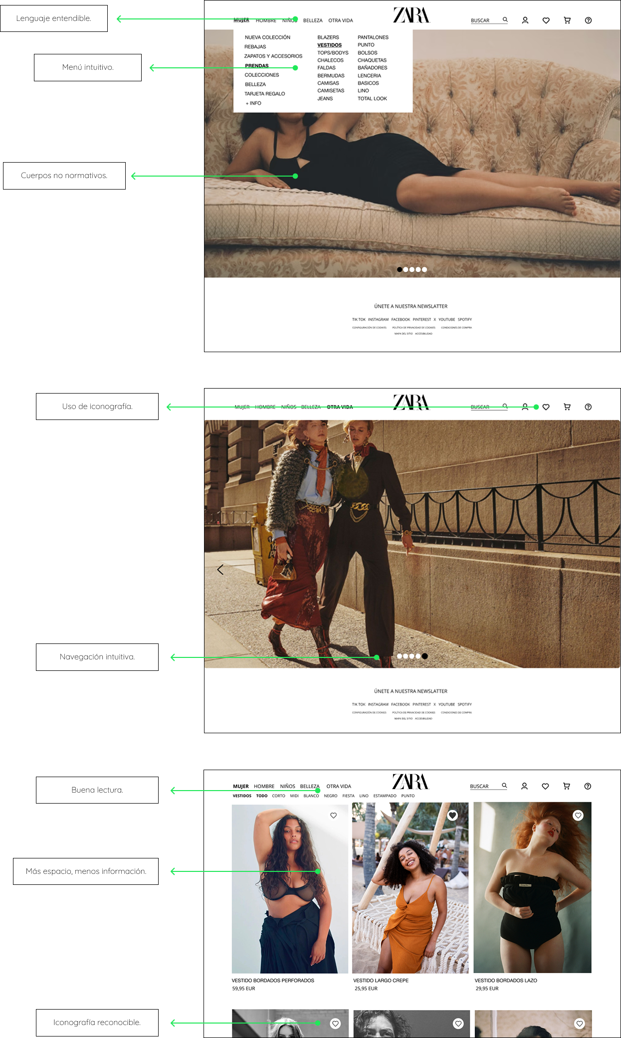 Ocupación del espacio en página | ZARA | MANGO | HM | CORTEFIEL |