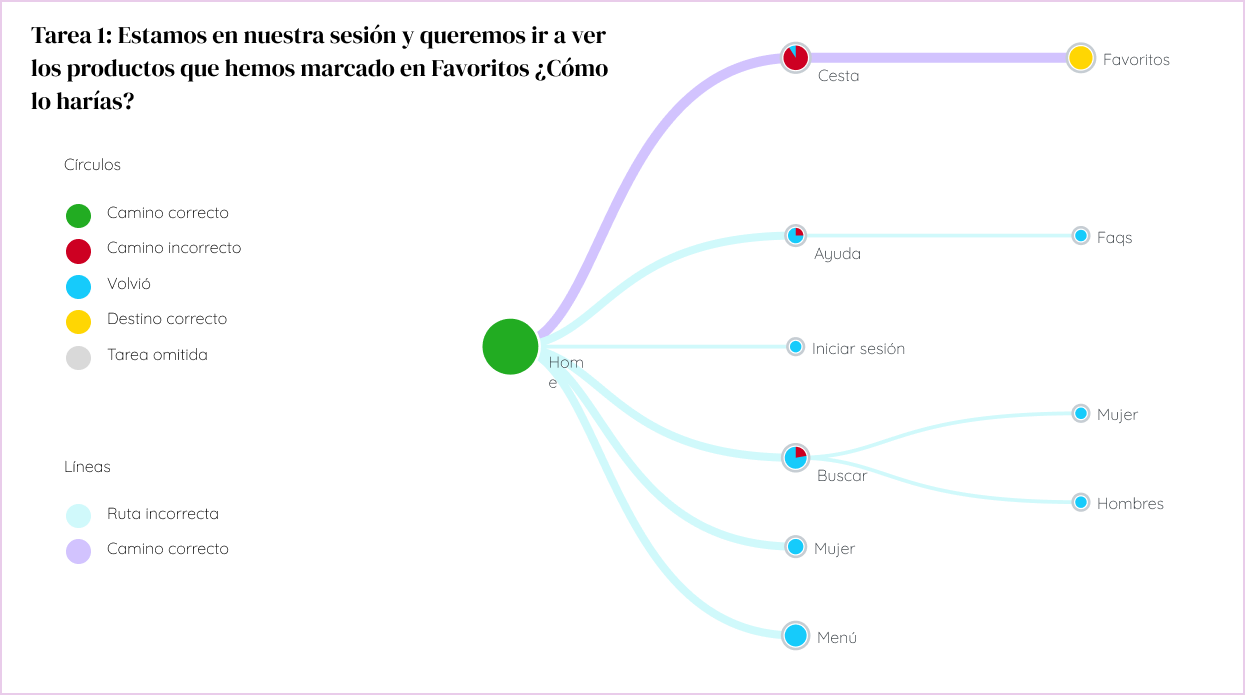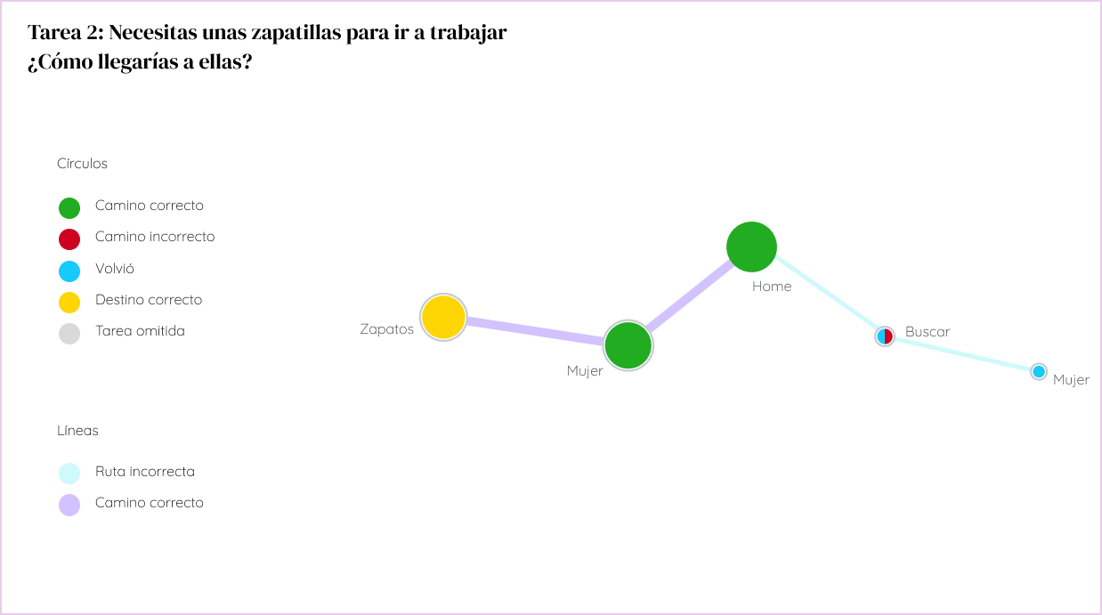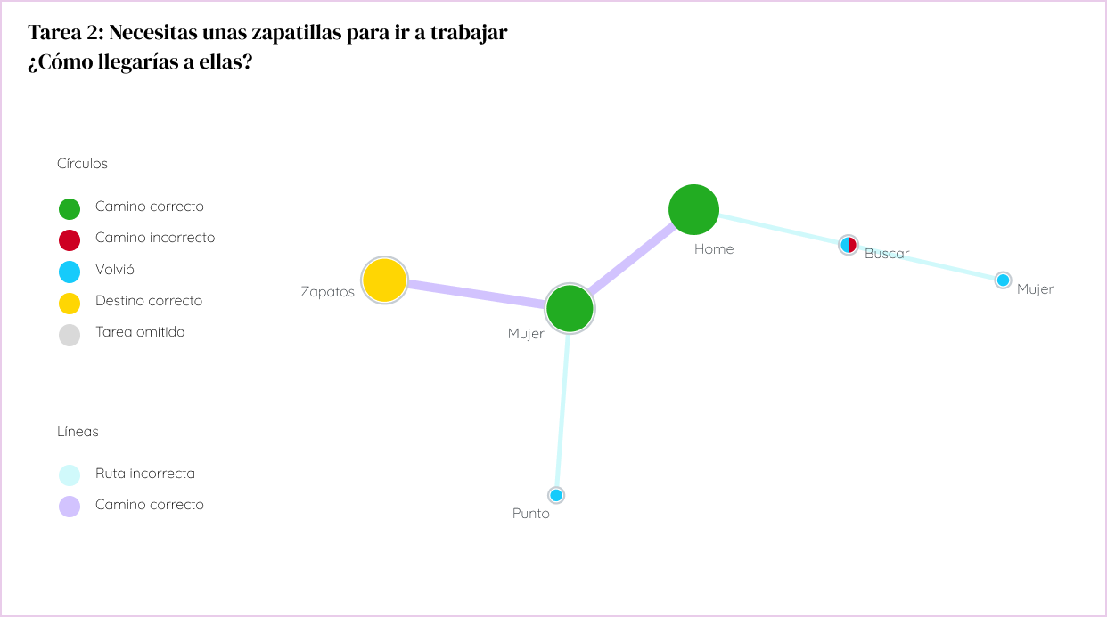 Tree Testing sobre la arquitectura de la información actual. Para realizarlo se utilizó la aplicación Optimal Workshop. Se les envió a 10 mujeres de entre 20 y 50 años, habituales clientas de Zara.