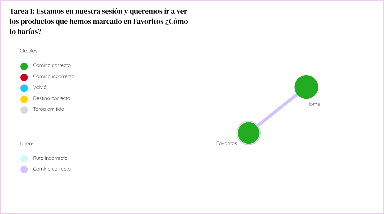 Agregando Favoritos a la página de Inicio, no se ha cometido ni un sólo error. El 100% de los usuarios lo ha encontrado sin dificultades. En cuanto al menú, eliminando la hamburguesa, no se registran cambios en el comportamiento de los usuarios. Lo que nos lleva a pensar que la eliminación de este, es un acierto.